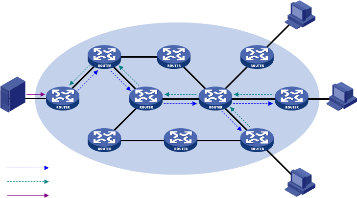 built in the network, with the source S as its root and receivers as its leaves. This SPT is the