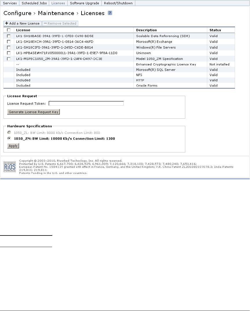 Figure 3-4. Configure > Maintenance > Licenses Page