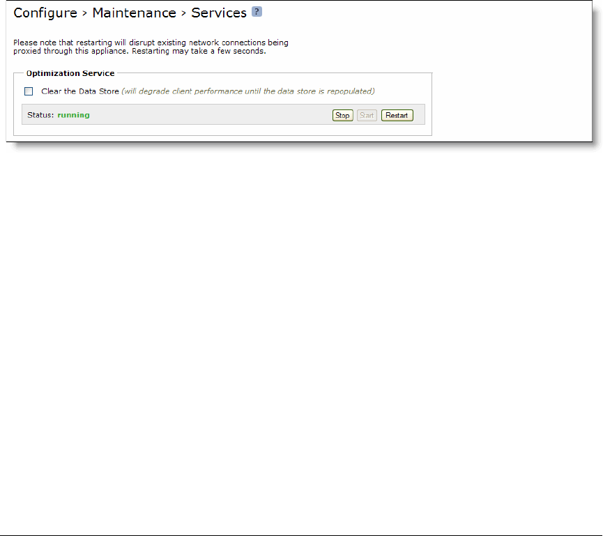 8. Choose Configure > Maintenance > Services and click Restart to restart