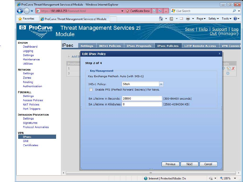SITE B: Here we select the IKE policy to use as well as optionally choosing