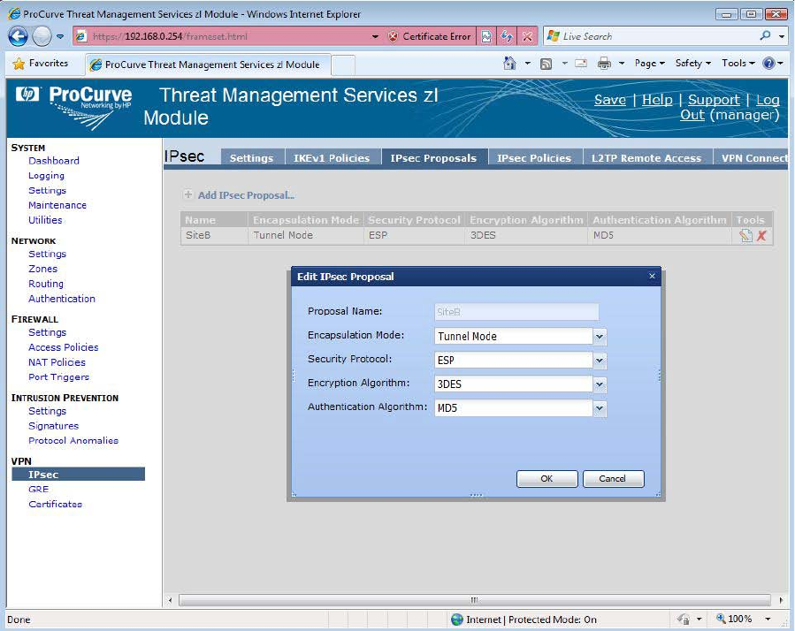 SITE A: Moving to our IPsec proposal, we make it exactly the same as Site B.