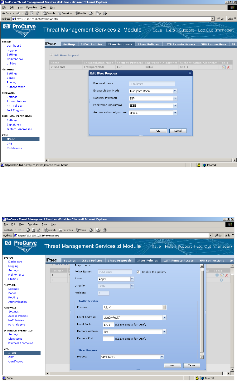 Next we will configure the IPsec Proposal. Because we are using Windows