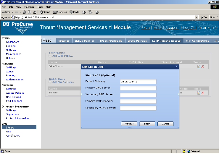 Here we want to use the TMS zl Module’s Virtual IP address for the default