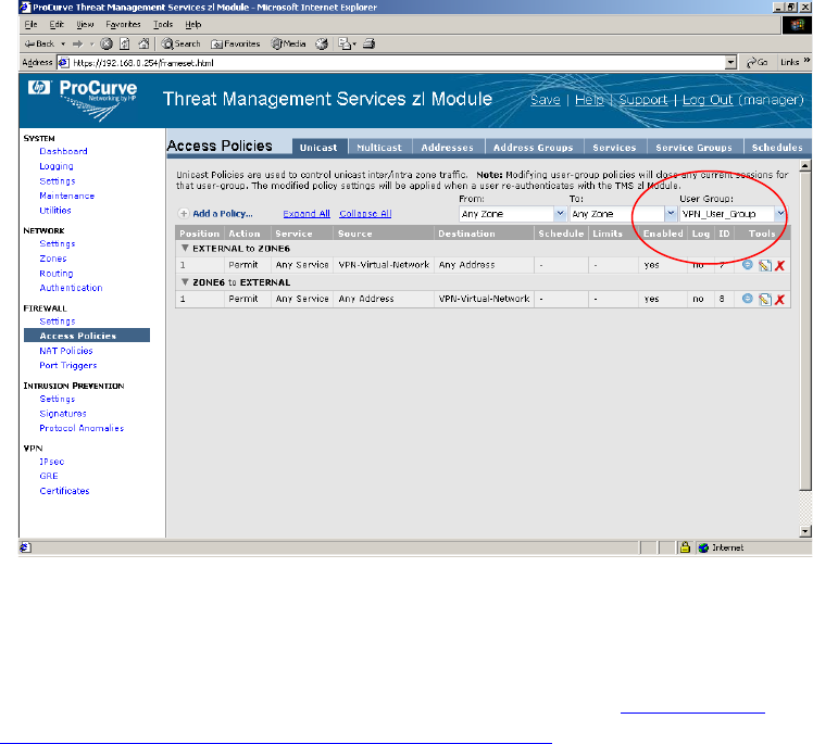 Windows and Macintosh VPN clients, see Section C in the HP ProCurve