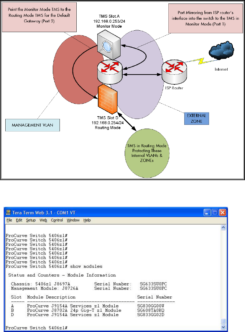 mode. The monitor mode TMS zl Module will be configured to use internal port 2 for