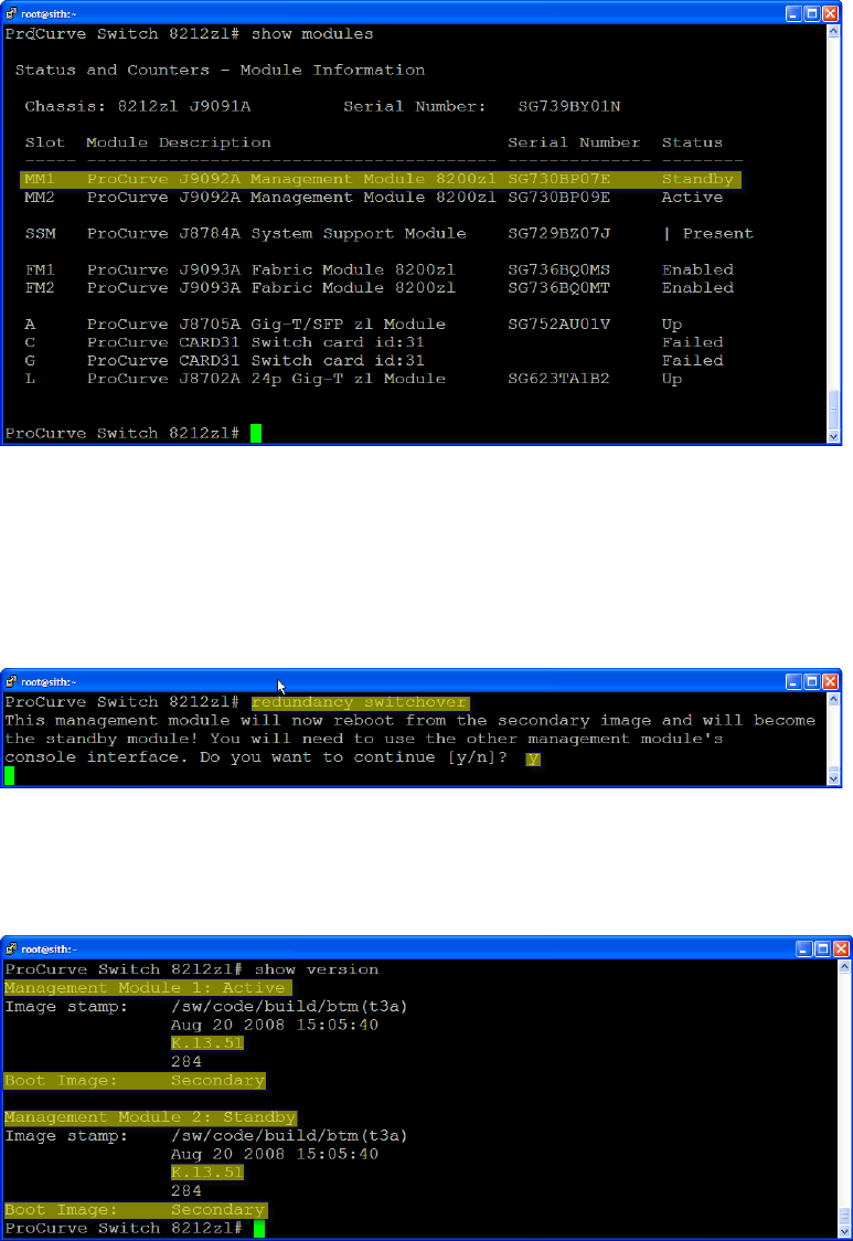 the TMS zl Modules to the standby management module running the new version of switch