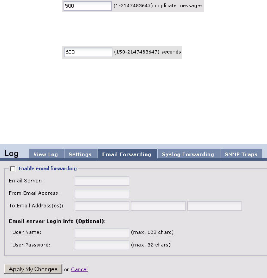 System > Logging > Email Forwarding Window
