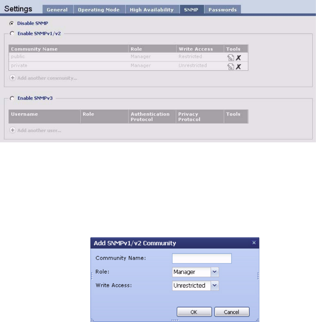 2. Under Enable SNMPv1/v2, click Add another community. The Add