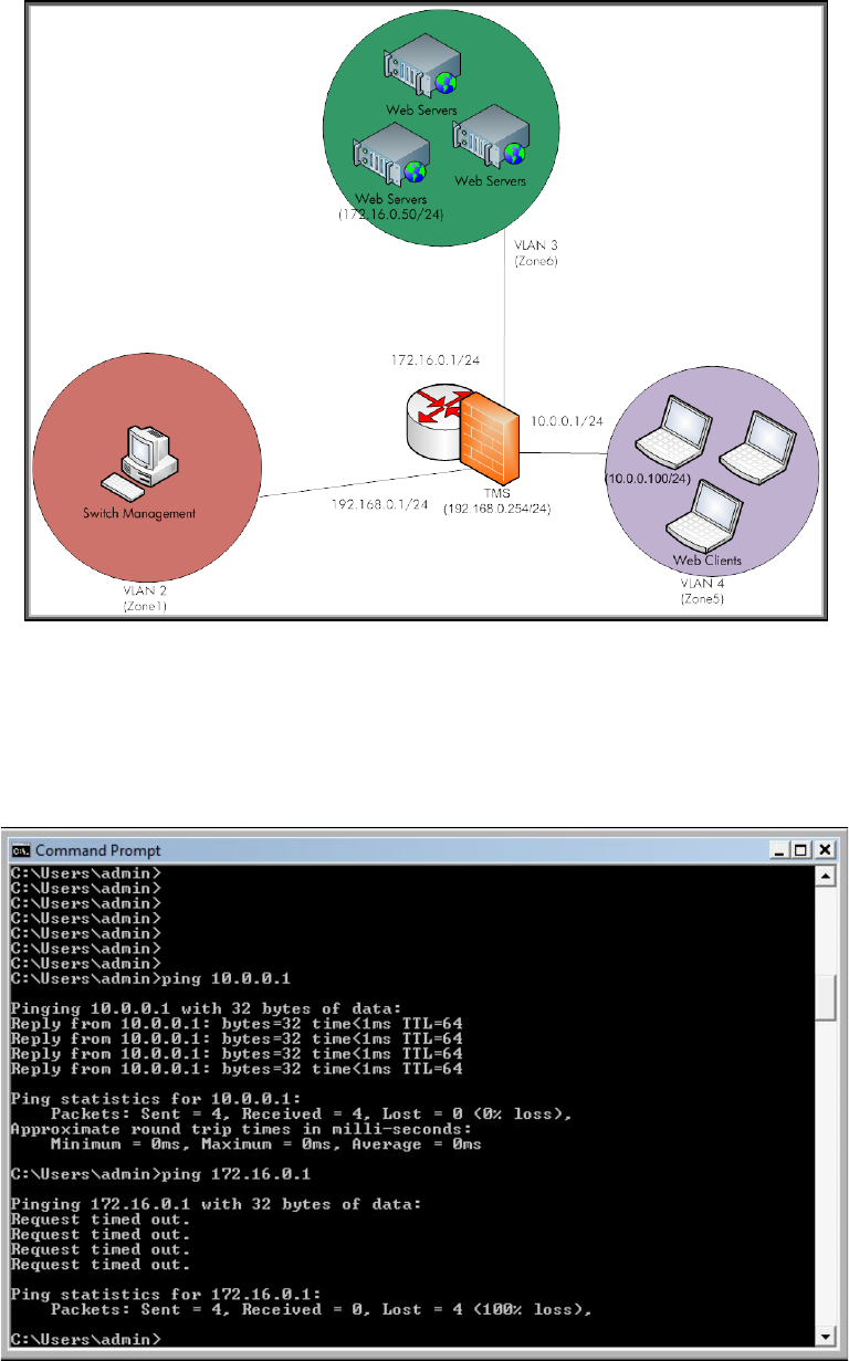 that 172.16.0.1 is the default gateway for VLAN 3 - the server VLAN. We cannot ping