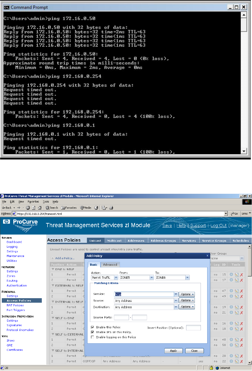 Zone6 access policies. I can not ping the management VLAN (192.160.0.254) as shown.