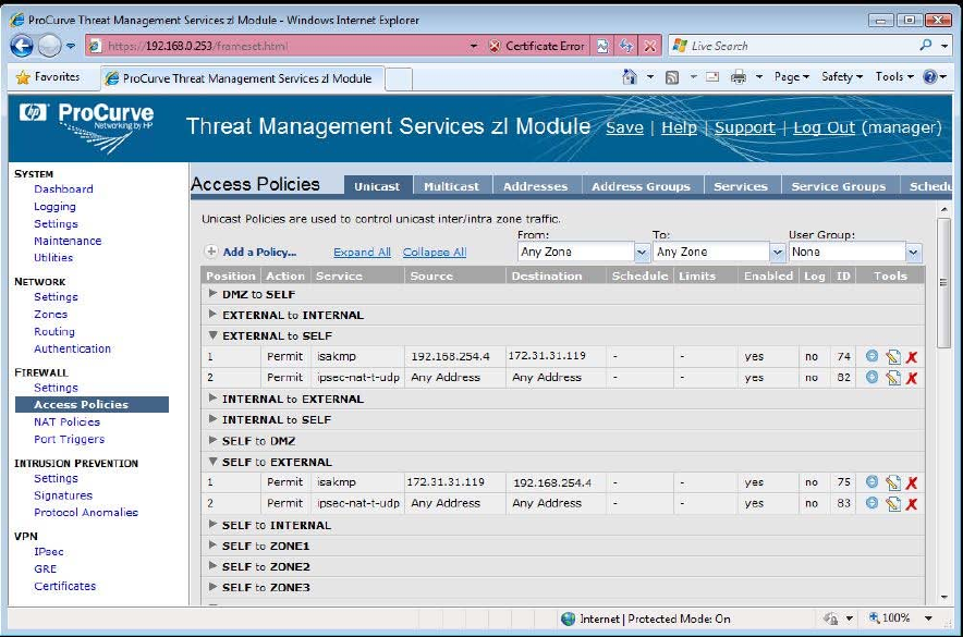 - 11.0 Using multiple HP ProCurve Threat Management Services zl Modules