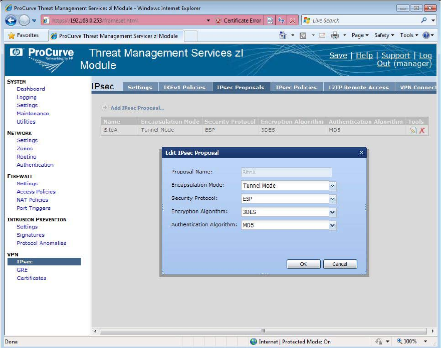 SITE B: Next we move to IPsec Proposals. The image below shows what we