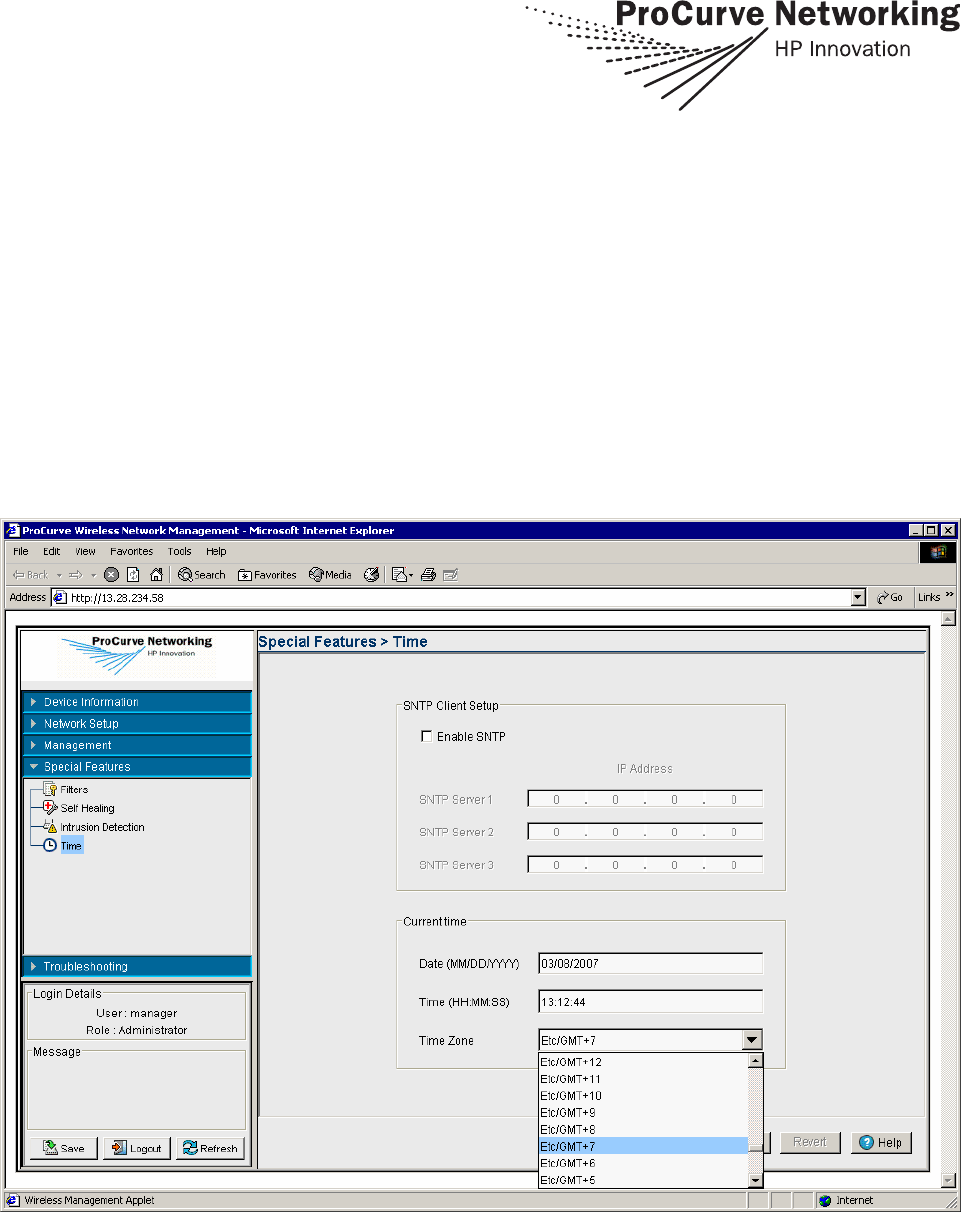 Services xl Module (J9003A) support the Simple Network Time Protocol (SNTP). The Web Browser