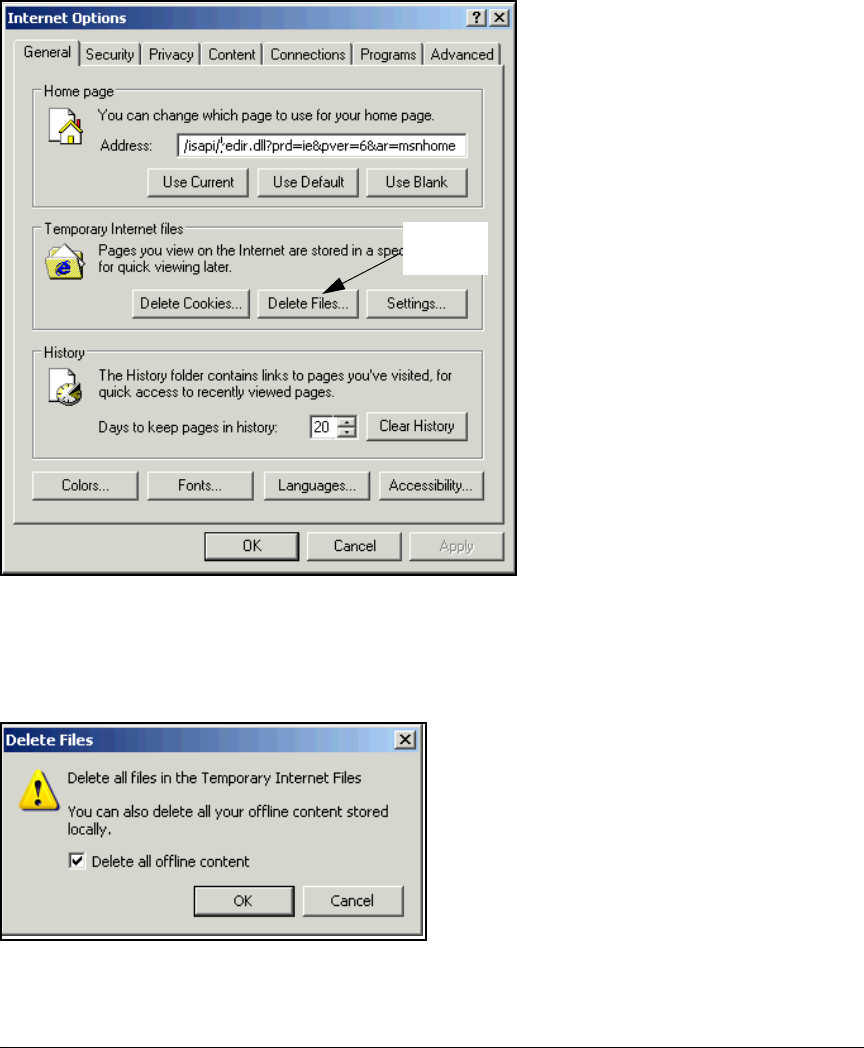 4. In the Temporary Internet files section, click Delete Files. The Delete Files window is displayed.