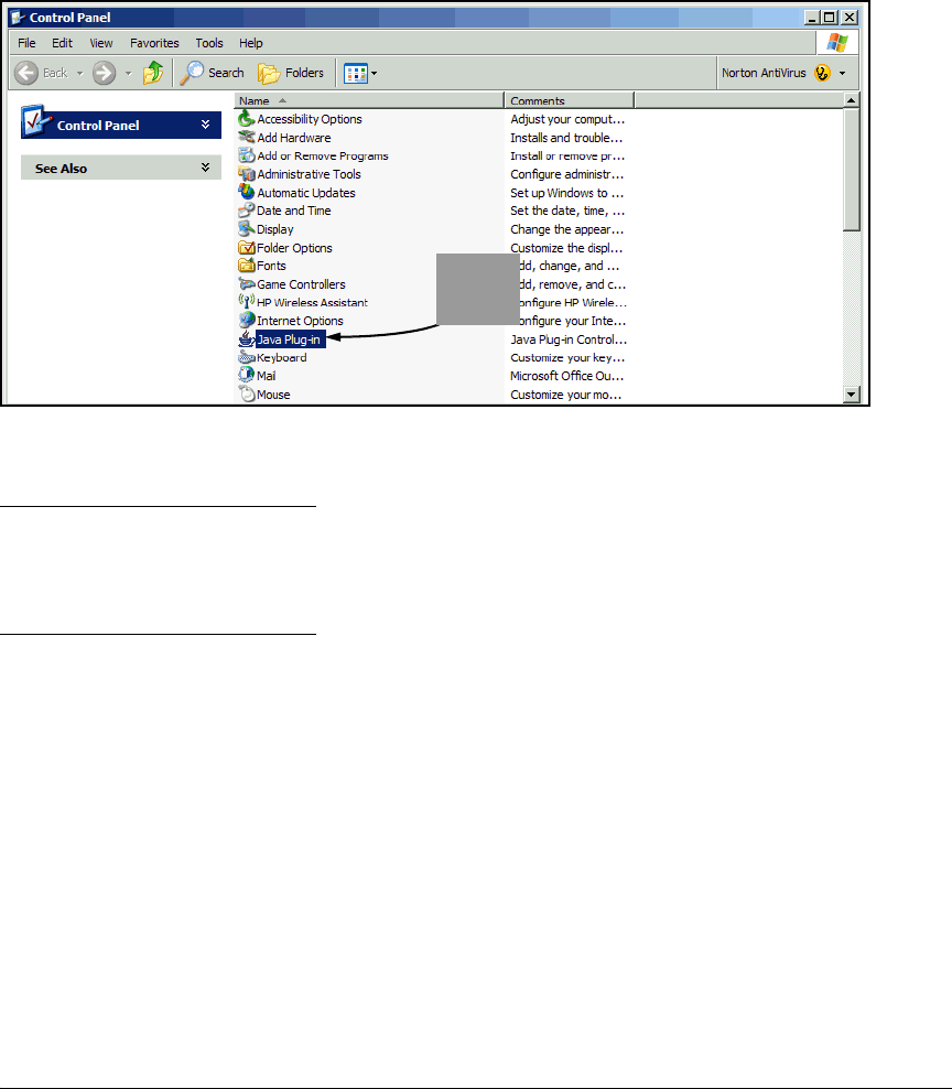 2. Select Java Plug-in. The Java Plug-in Control Panel window is displayed.