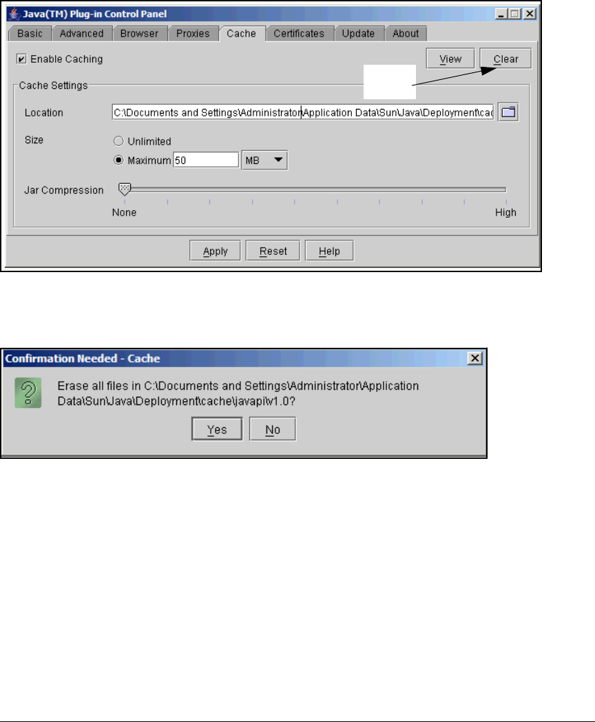 4. You are prompted to confirm clearing the cache. Click the Yes button.