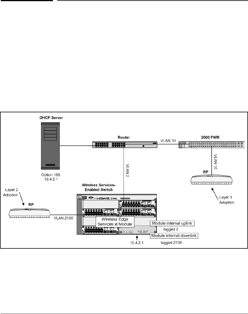 The module can adopt RPs that are in the Radio Port VLAN (Layer 2 adoption)