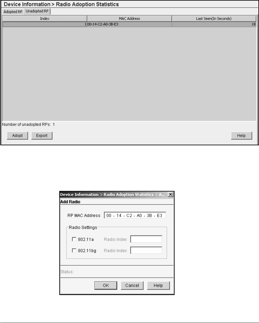 7. Click the Adopt button at the bottom of the screen. The Add Radio screen