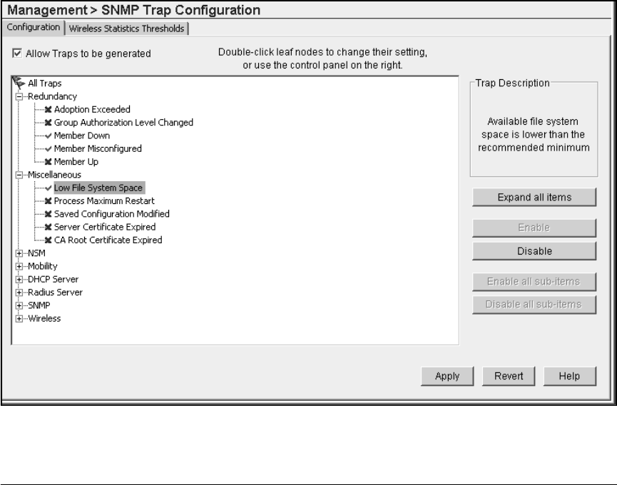 Figure 2-71. Enabling SNMP Traps on the Management > SNMP Trap Configuration