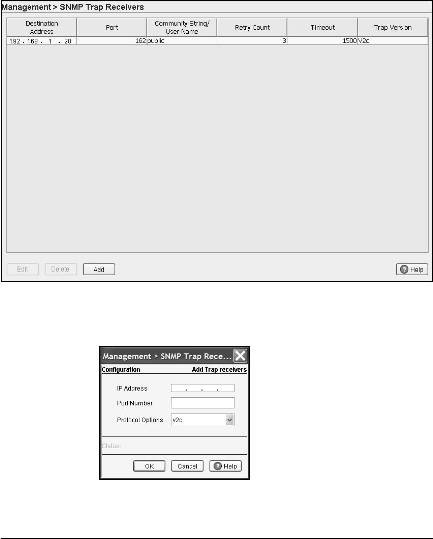 2. Click the Add button. The Add Trap receivers screen is displayed.