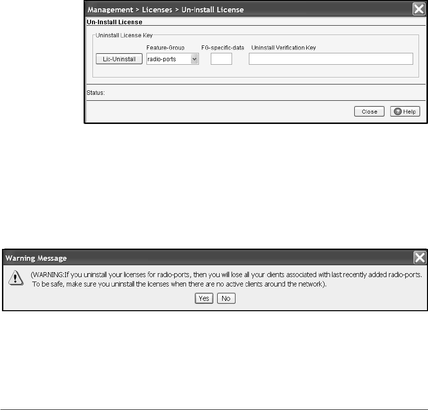 Figure 2-85. Warning Message Displayed When You Attempt to Uninstall Licenses