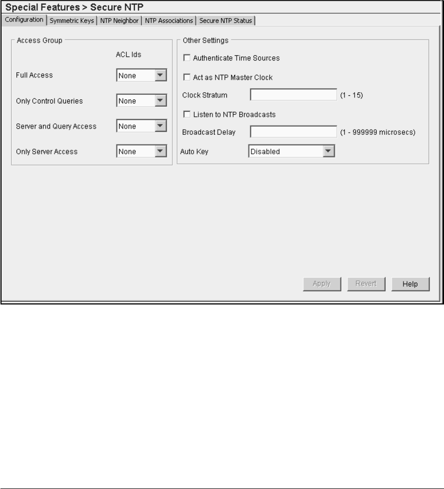 Figure 2-89. Special Features > Secure NTP > Configuration Screen