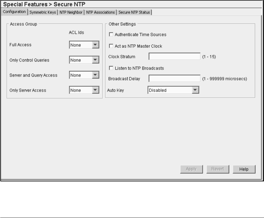 To apply the access controls, move to the Special Features > Secure NTP screen.