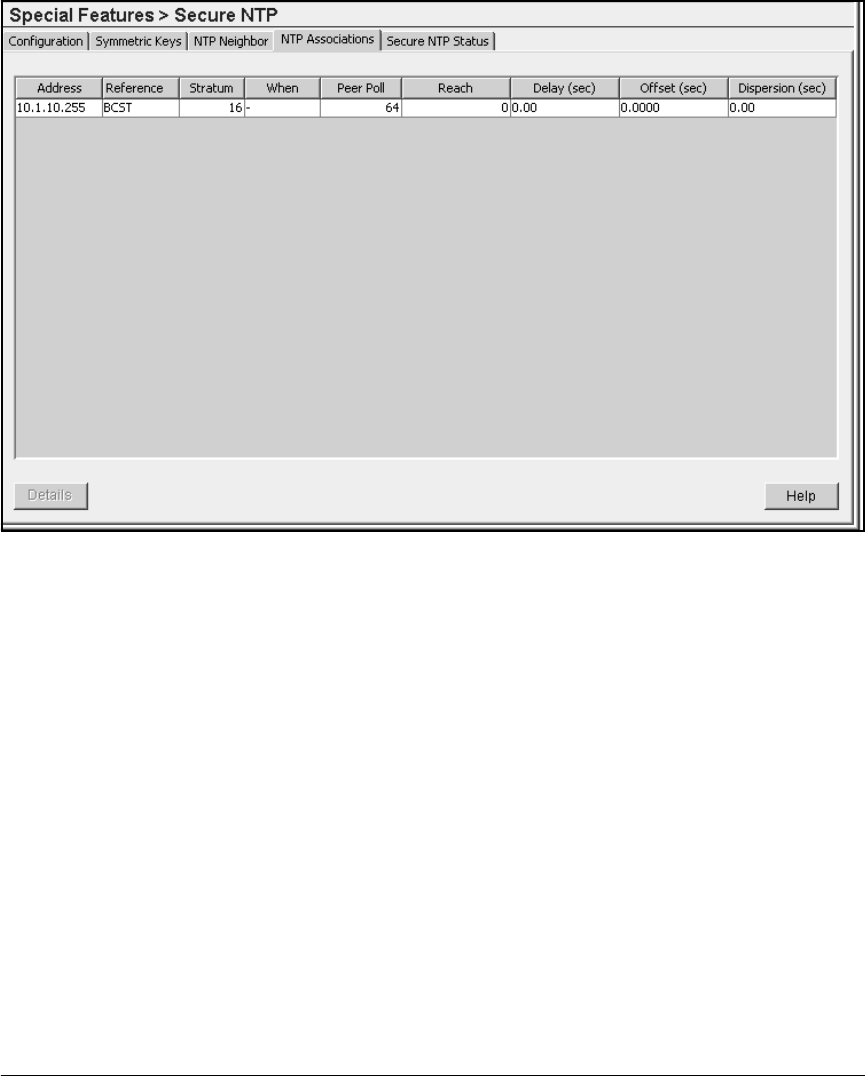 Figure 2-98. Special Features > Secure NTP > NTP Associations Screen