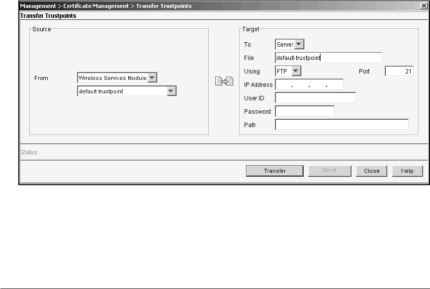 2. Click the Transfer Trustpoints button. The Transfer Trustpoints screen is