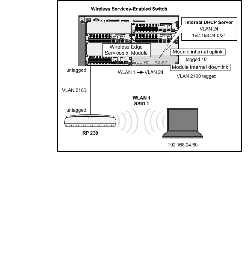 assigns traffic from WLAN 1 to VLAN 24, a VLAN reserved for wireless traffic.