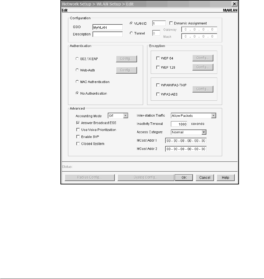 1. Access the Edit screen for the WLAN, as described in “Configuring a