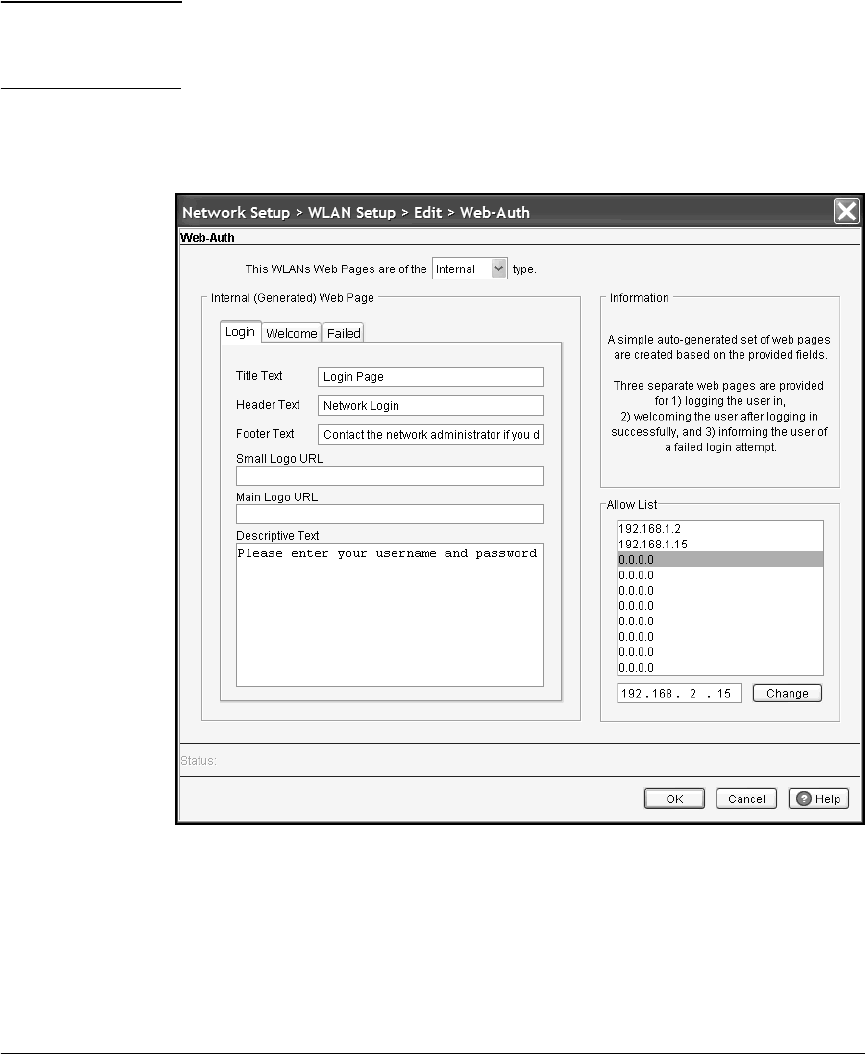 4. Click the Config button next to Web-Auth. The Web-Auth screen is dis-