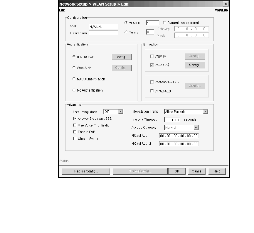 1. Access the Edit screen for the WLAN that is to use dynamic WEP: