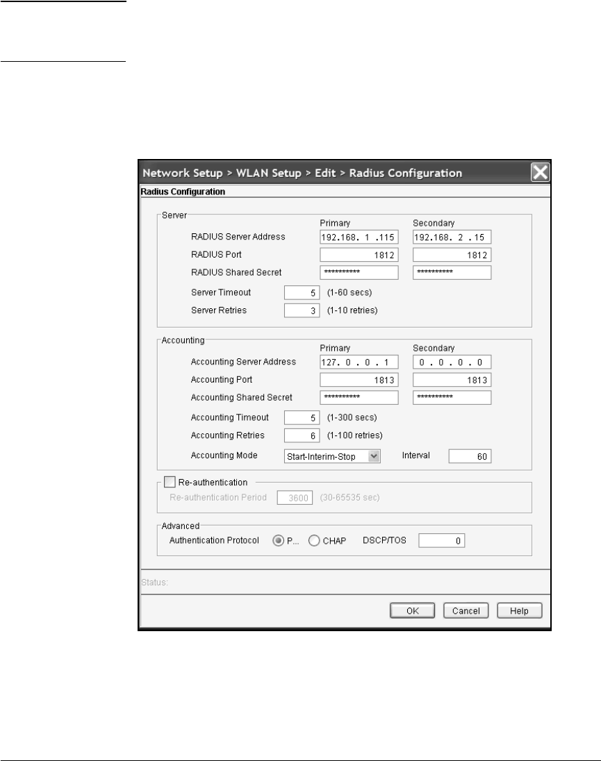 7. Click the Radius Config button at the bottom of the screen. The Radius
