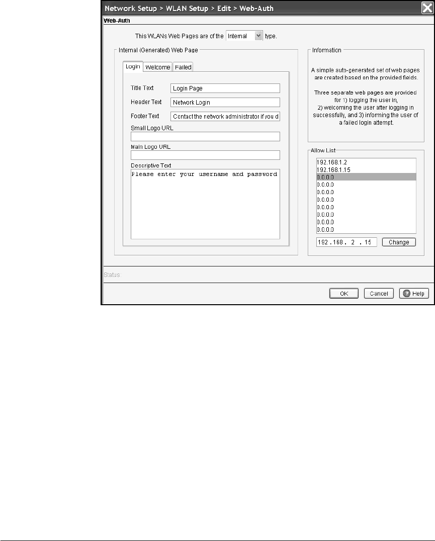 • Internal—three default pages stored on the Wireless Edge Services xl