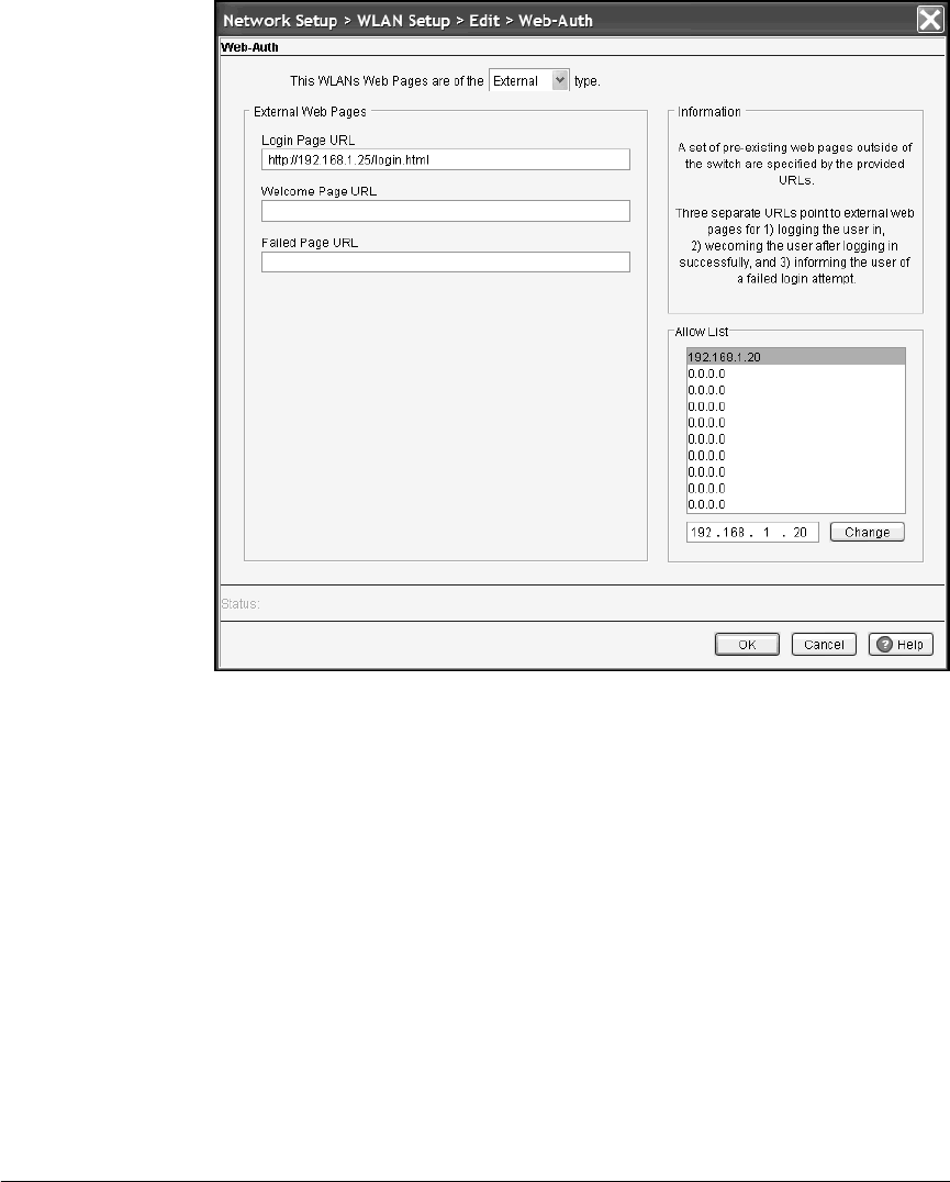 Figure 5-18. Specifying the URL for Web-Auth Pages That Are Stored on an