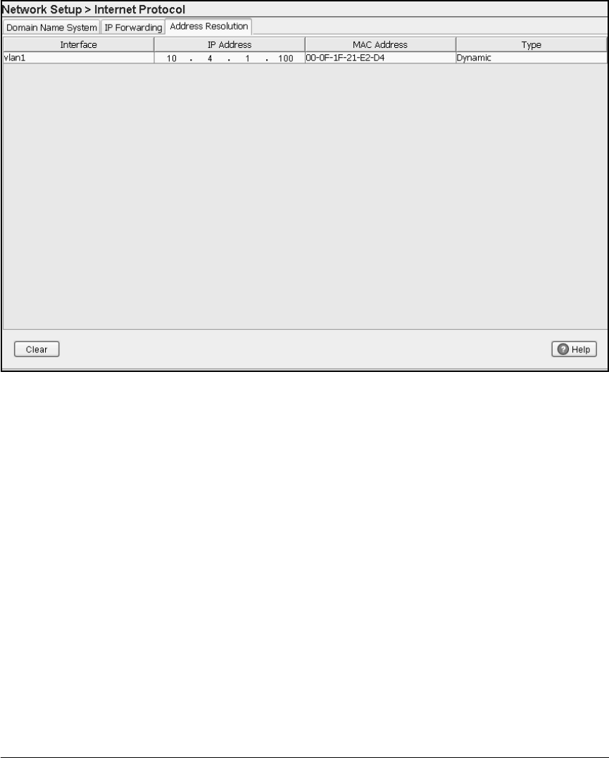 Figure 6-13. Network Setup > Internet Protocol > Address Resolution Screen