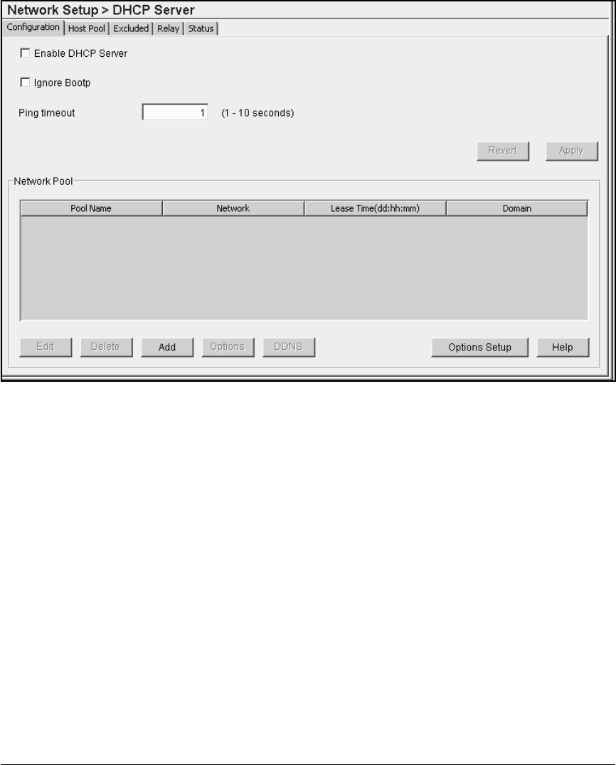 Figure 6-17. Network Setup > DHCP Server > Configuration Screen