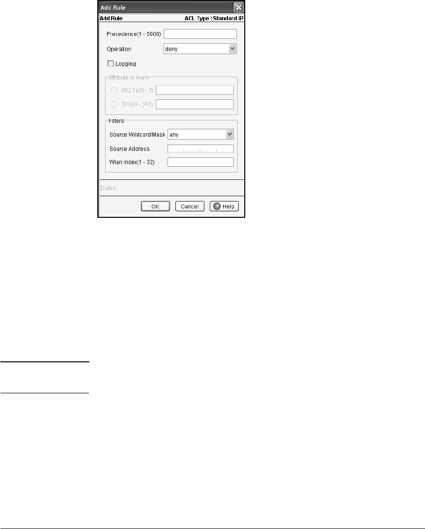 Figure 7-4. Add Rule Screen for Standard IP ACLs