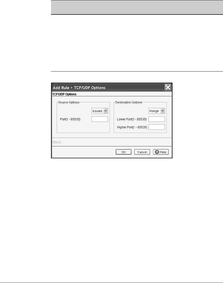 b. If you selected the TCP or UDP protocol, the TCP/UDP Options screen