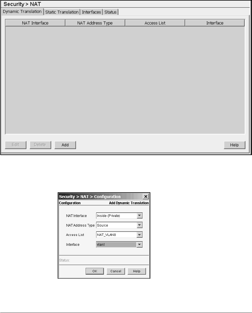 Figure 8-13. Security > NAT > Dynamic Translation Screen