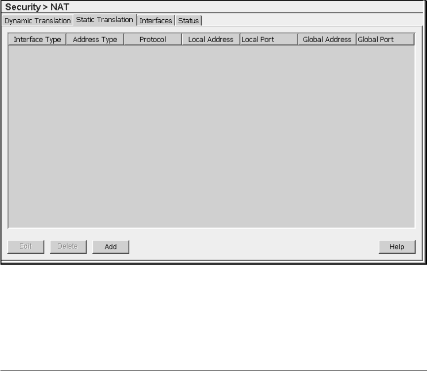 Figure 8-16. Security > NAT > Static Translation Screen