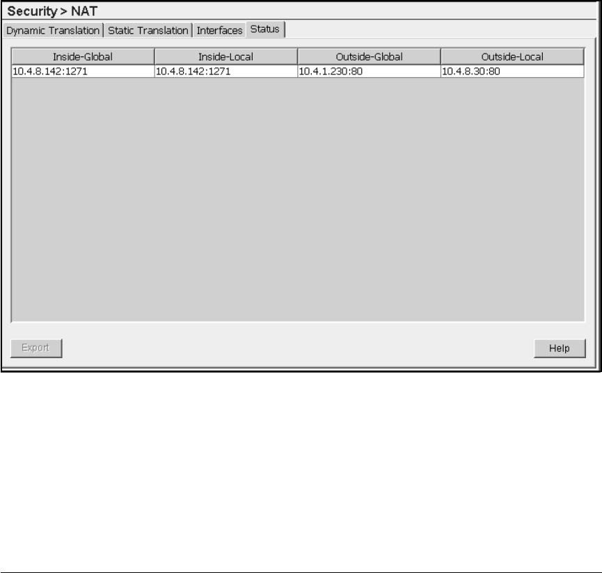 Figure 8-23. Viewing Outside NAT in the Security > NAT > Status Screen