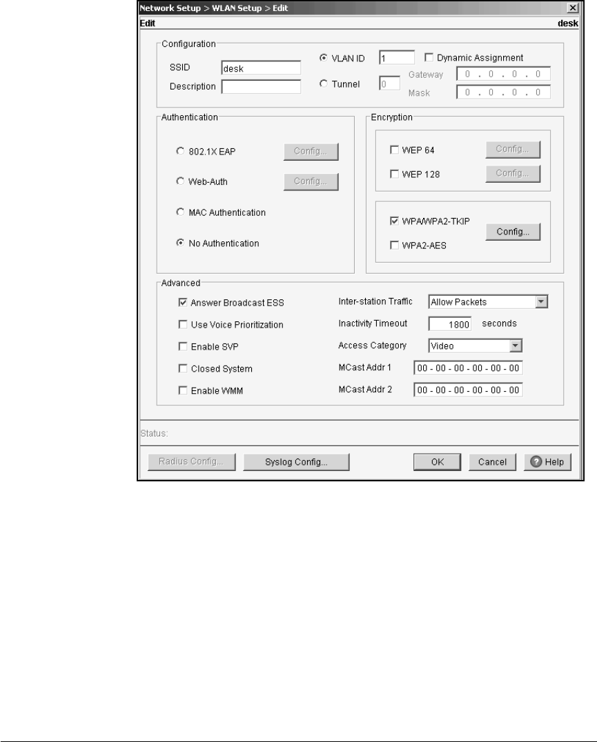 Figure 9-3. Configuring Settings for a WLAN That Uses Pre-Authentication