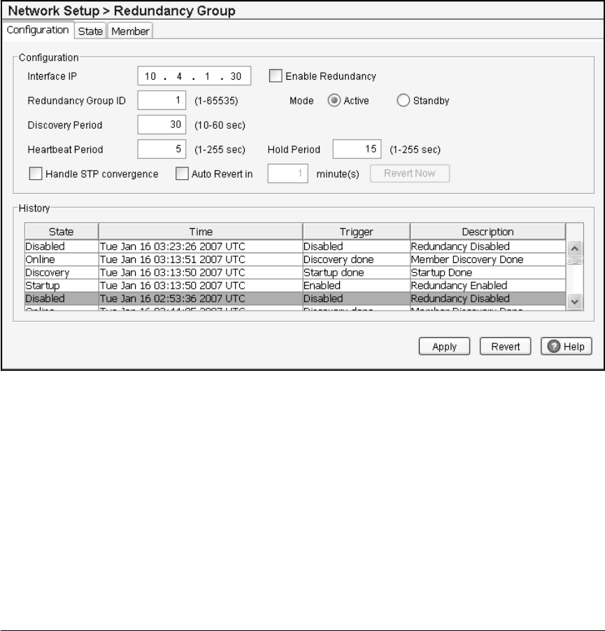 Figure 10-3. Network Setup > Redundancy Group > Configuration Screen
