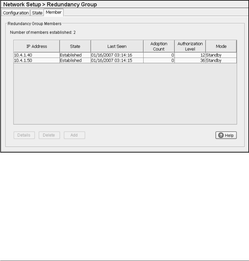 Figure 10-9. Network Setup > Redundancy Group > Member Screen