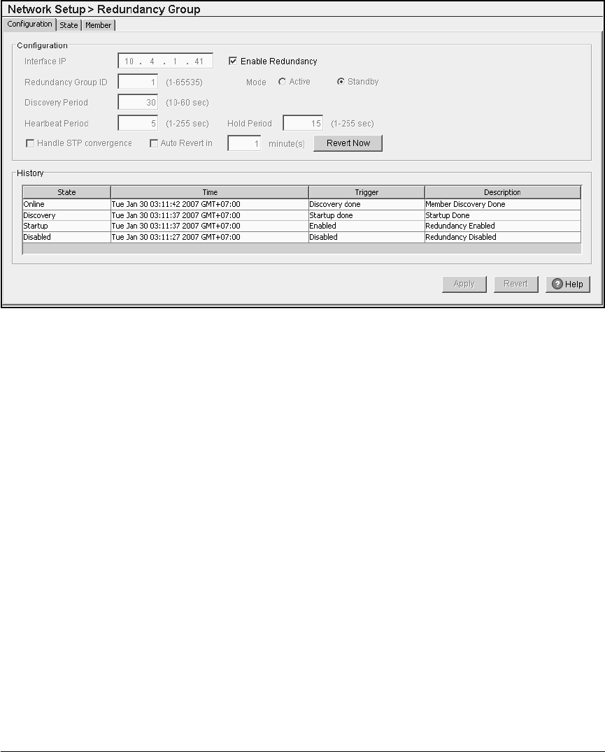 Figure 10-16.Revert Now Button in the Network Setup > Redundancy Group >