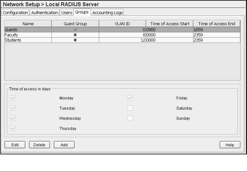 1. Select Network Setup > Radius Server and click the Groups tab.