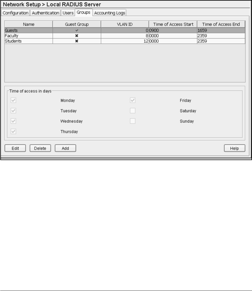 1. Select Network Setup > Radius Server and click the Groups tab.