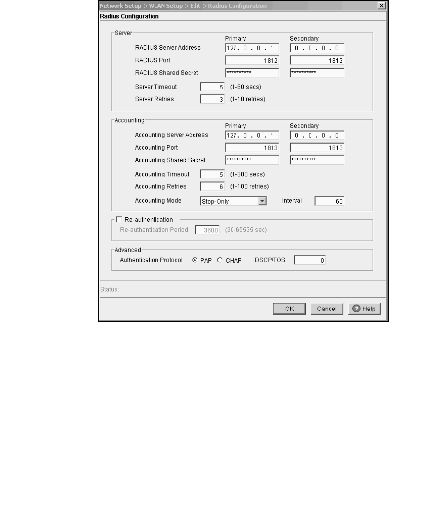 Figure 11-19.Specifying the Accounting Server in the Radius Configuration Screen